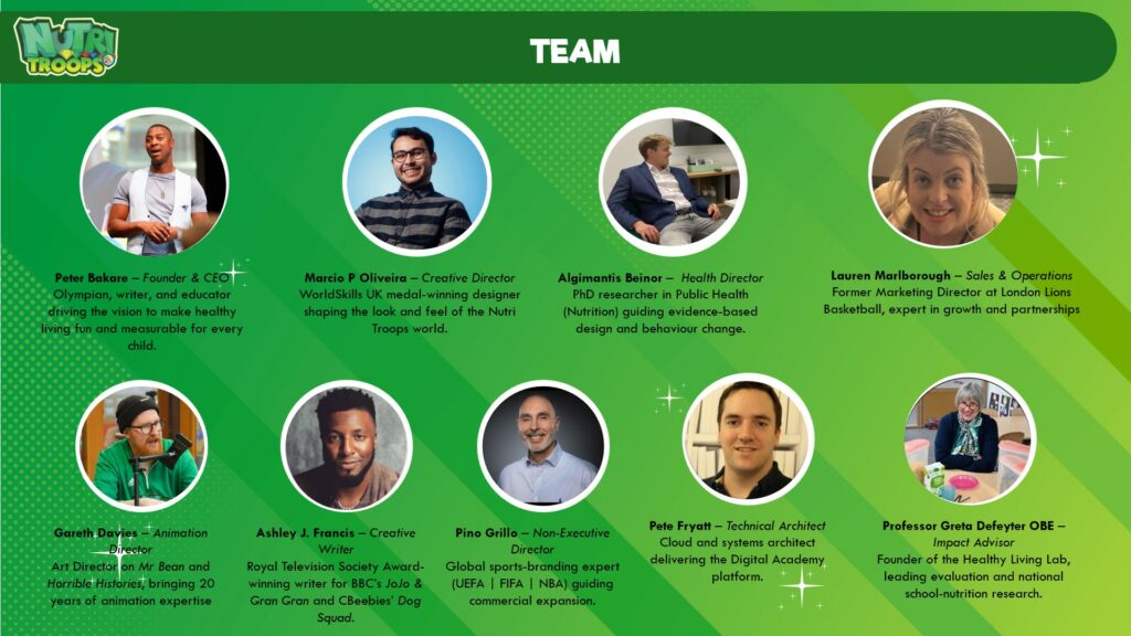 Nutri Troops was founded by former Olympian Peter Bakare, a GB volleyball player who represented Team GB at the London 2012 Olympic Games. After studying animation at Sheffield Hallam University, Peter even went on to write a script for Channel 4โs Skins.