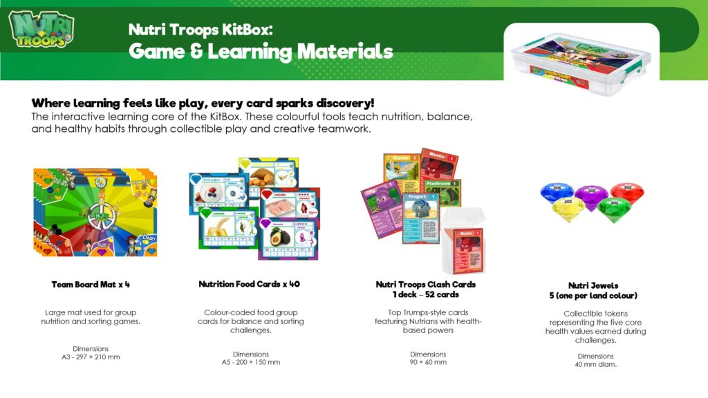 - ๐ฏ Nutri Points Cards (x60): Reward healthy effort & teamwork.